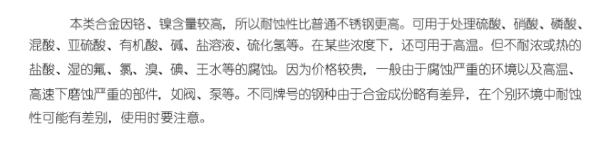 不銹鋼是鉻、鎳含量較高的合金鋼。通常把耐大氣腐蝕的合金鋼稱為不銹鋼,把在酸中及其它強腐蝕性介質(zhì)中耐腐蝕的合金鋼稱為耐酸鋼。一般把上述不銹鋼與耐酸鋼統(tǒng)稱為不銹耐酸鋼或簡稱為不銹鋼。